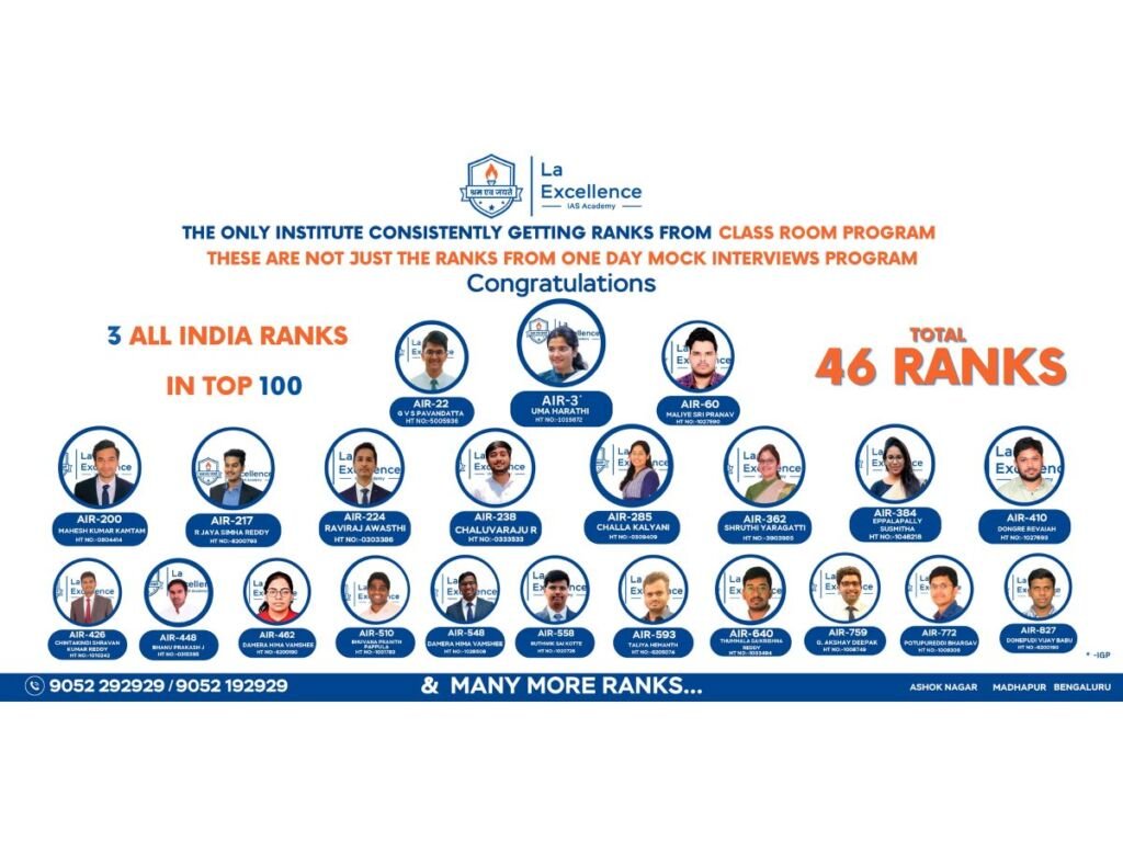 La Excellence IAS Academy takes pride in the achievements of its students and remains dedicated to fostering excellence in education. With its unwavering commitment and the introduction of innovative programs, the institute continues to shape the future of aspiring civil servants and contribute to the nation’s growth.
