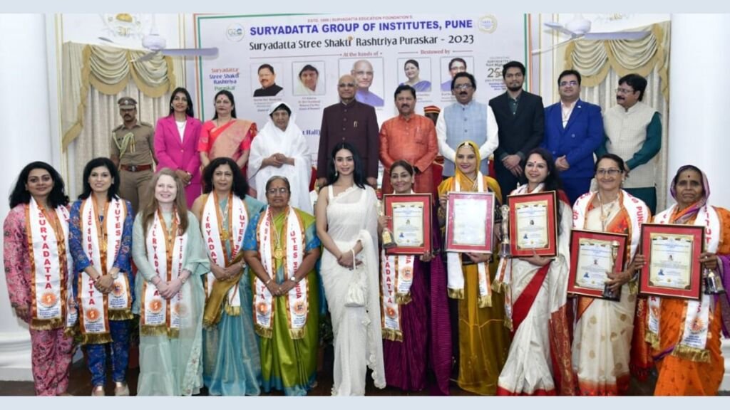 Governor Ramesh Bais presented Suryadatta Stree Shakti National Awards to the women, who have done commendable work in various fields. Prof. Dr. Sanjay B. Chordiya, Vice President and Secretary Sushama Chordiya and many others were present on the occasion